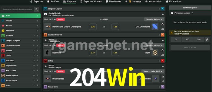 A aposta 204Win oferece aos jogadores a experiência mais conveniente de apostas em eSports!
